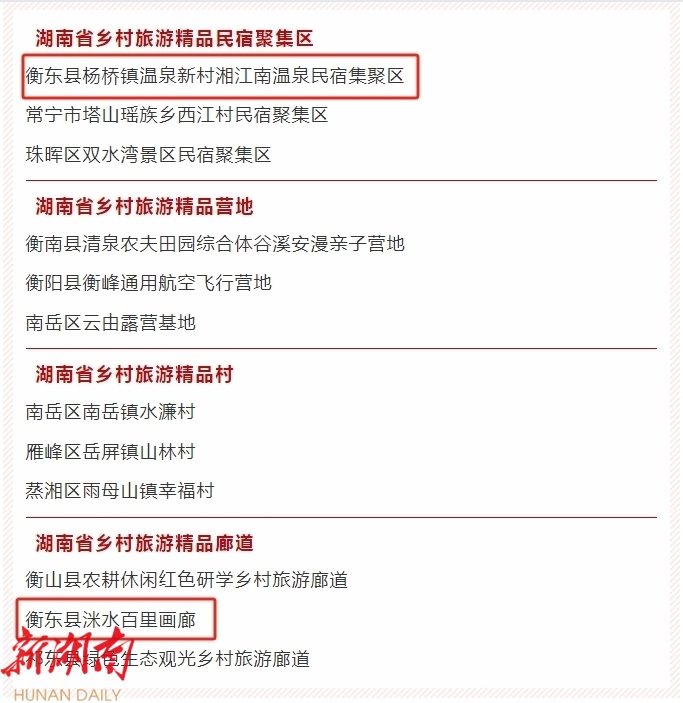 2024年湖南省乡村旅游“四个一百”工程建设名录