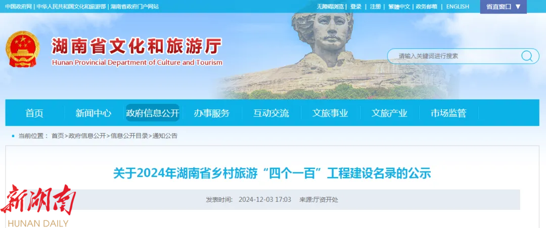 湖南省文化和旅游厅公布了