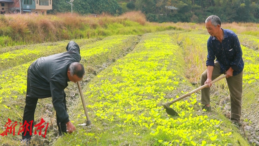 冬闲人不闲。初冬时节,在大布江乡虎居坑村,田间地头到处是忙碌的身影。油菜,是虎居坑村发展产业的第一张名片。眼下,地里的油菜长势喜人,村民们正抢抓好天气进行田间管护。受气候条件影响,当地一年只种一季水稻。水稻收割后,农田便在秋冬季节闲置了。今年由支村两委牵头,连片流转闲田种植油菜,增加收益的同时,还能创造就近务工岗位。