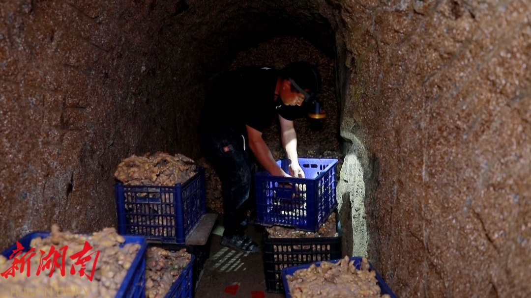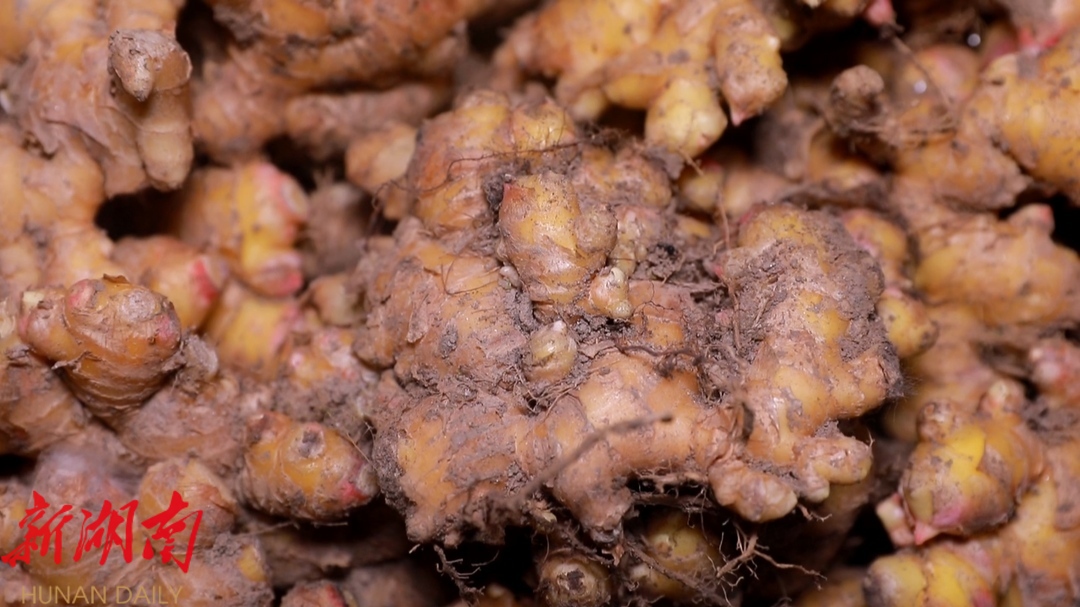 在村民新开挖的地窖里,还藏着不少“金疙瘩”。顺着地窖往里走,香气扑鼻而来,一块块生姜堆积成山。一个多月前,村里的生姜完成了采收。合作社负责人廖正旺过去在外地务工,因为家乡情结,他决定返乡创业,带动农户就地发展生姜种植。在他的带领下,村里生姜种植面积达到了100亩,带动农户30多户,生姜也成为虎居坑村的第三张产业名片。