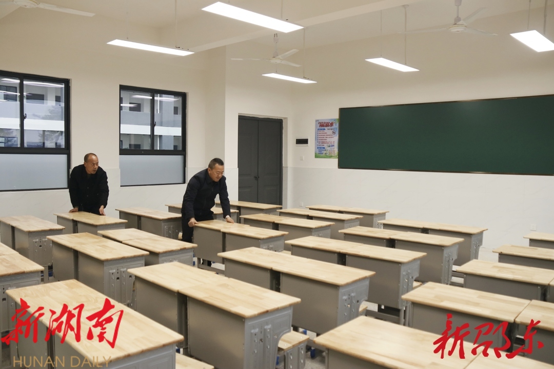 新邵东客户端12月8日讯(记者 张平华 实习记者 谢润新) 12月6日,记者在东郡实验学校看到,工作人员正在教室整理一批新到的课桌,为小学部正式启用做准备。据了解,东郡实验小学预计2025年1月4日前可投入使用。
