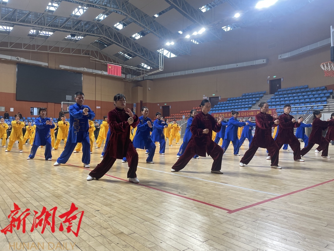 湖南日报·新湖南客户端12月8日讯(通讯员 苏扬)一缕武侠风,一点少年意,举手投足间,传递出一股韵律美。12月8日,湘阴杨式太极拳运动协会2024年年会举行,130多名太极爱好者展演太极拳、太极剑、太极扇。