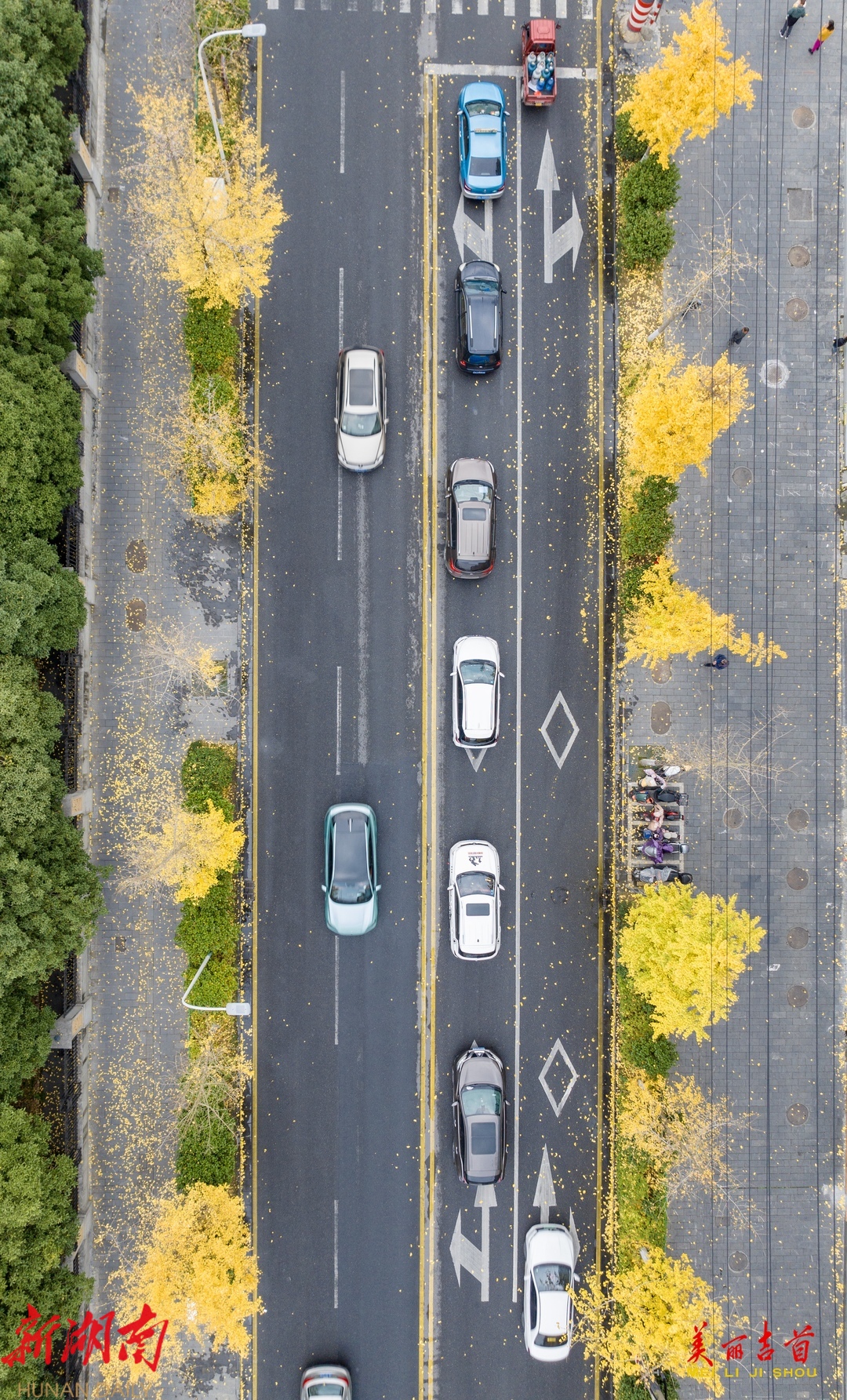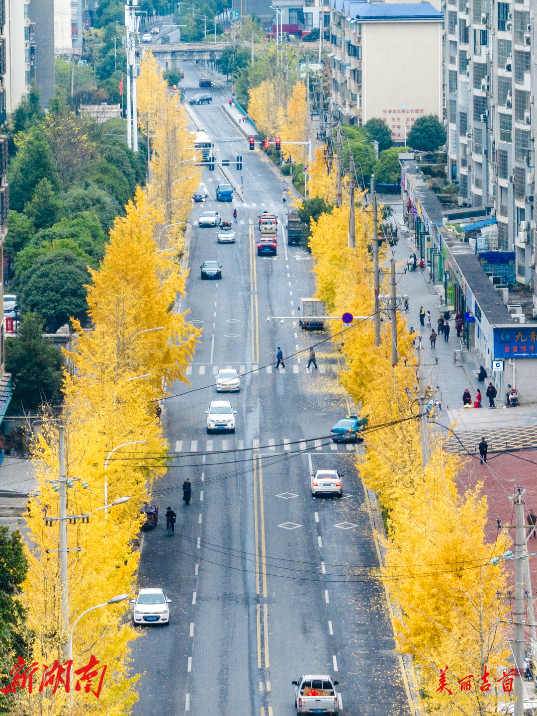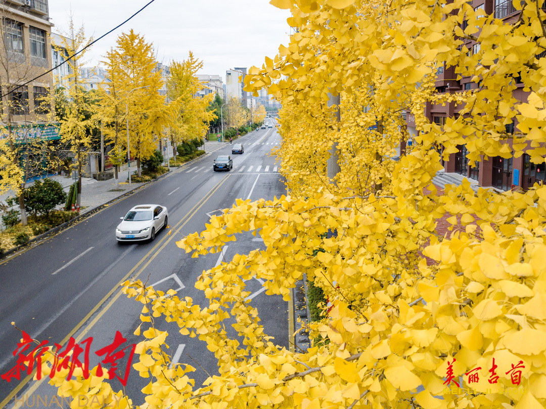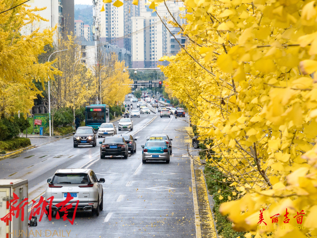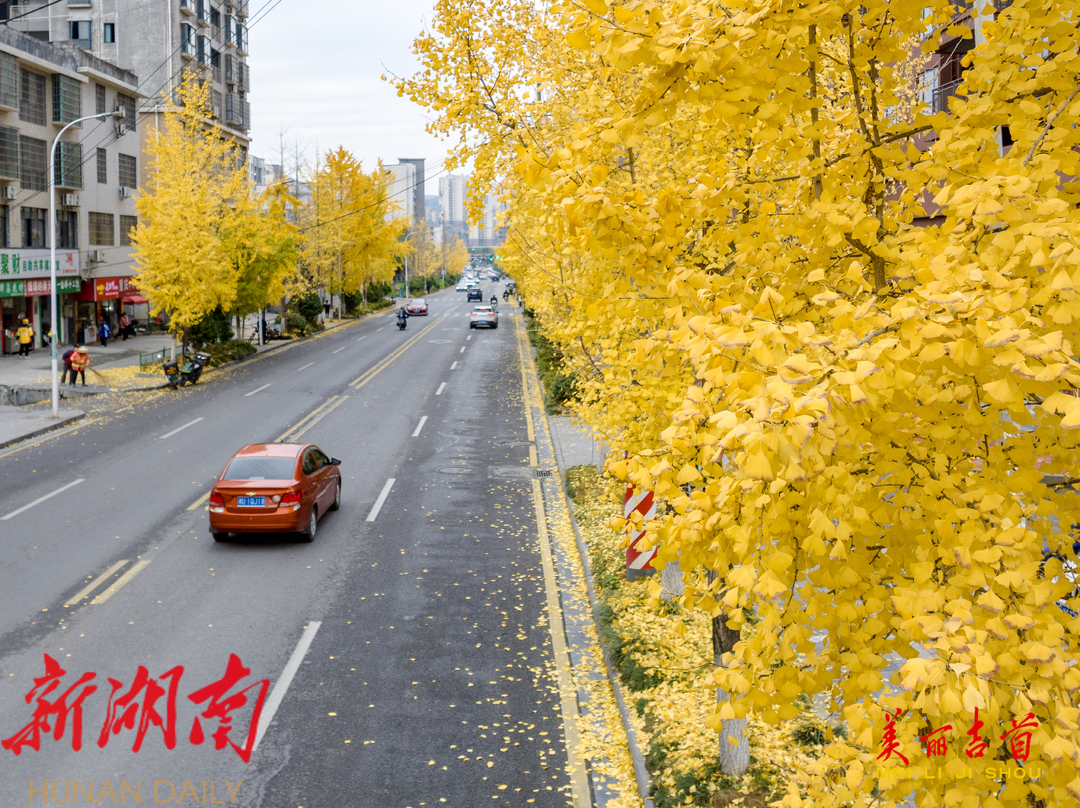 12月8日,吉首市乾州街道文心路,道路两旁的银杏叶金黄灿烂,微风拂过洒落一地,犹如一条金色大道。近期,该市各处银杏树叶进入最佳观赏期,为冬日城市增色添暖,美不胜收。