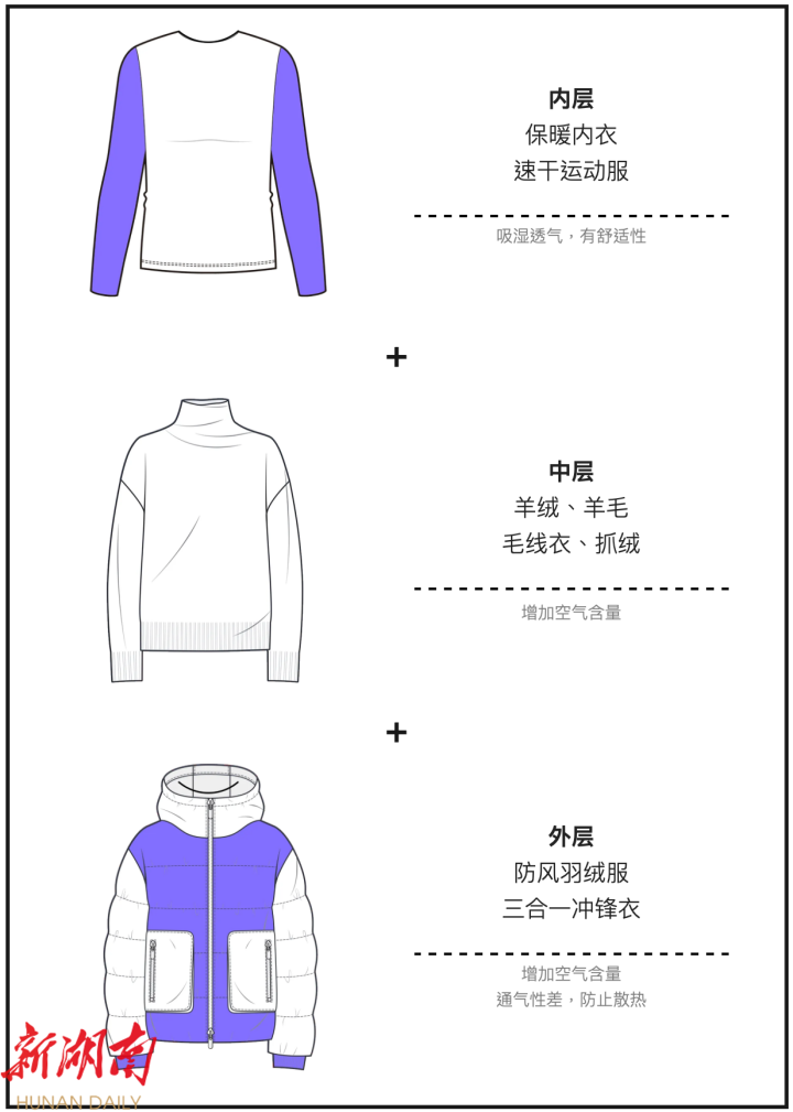 其实,“穿得越多越暖”是一个误区。穿衣保暖的关键在于有一定的厚度,并且有足够的空气层。