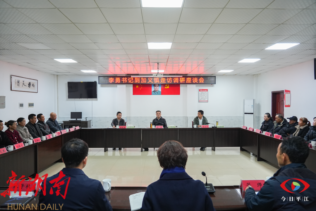 李勇在加义镇丽江村召开镇、村干部及村民代表座谈会。