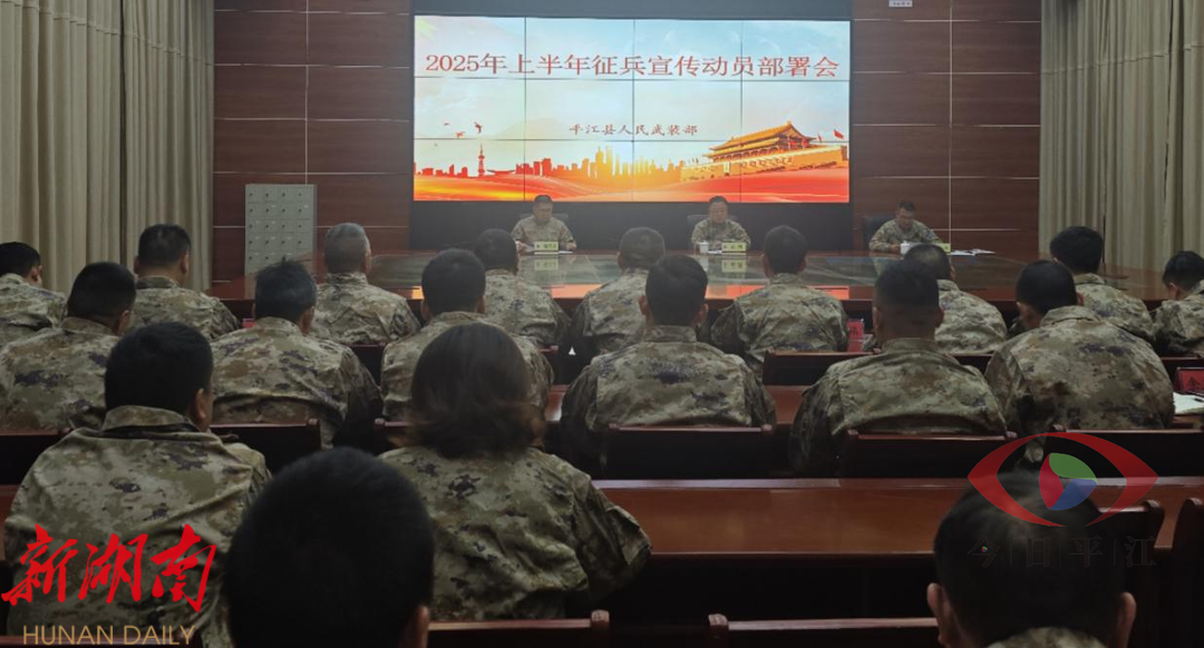 为全面落实好党管武装工作,激励更多优秀青年报名应征,12月5日,平江县人武部召开2025年上半年征兵宣传动员部署会。会议由中校副部长彭恩主持,25个乡镇(街道)武装部部长、副部长以及干事参加会议。