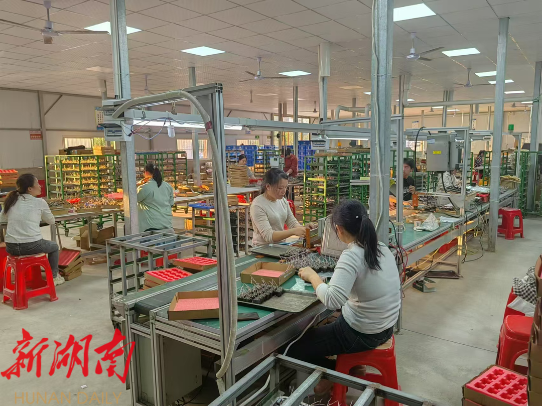 坦坪镇玉洞村村民在村里引进的电子厂工作
