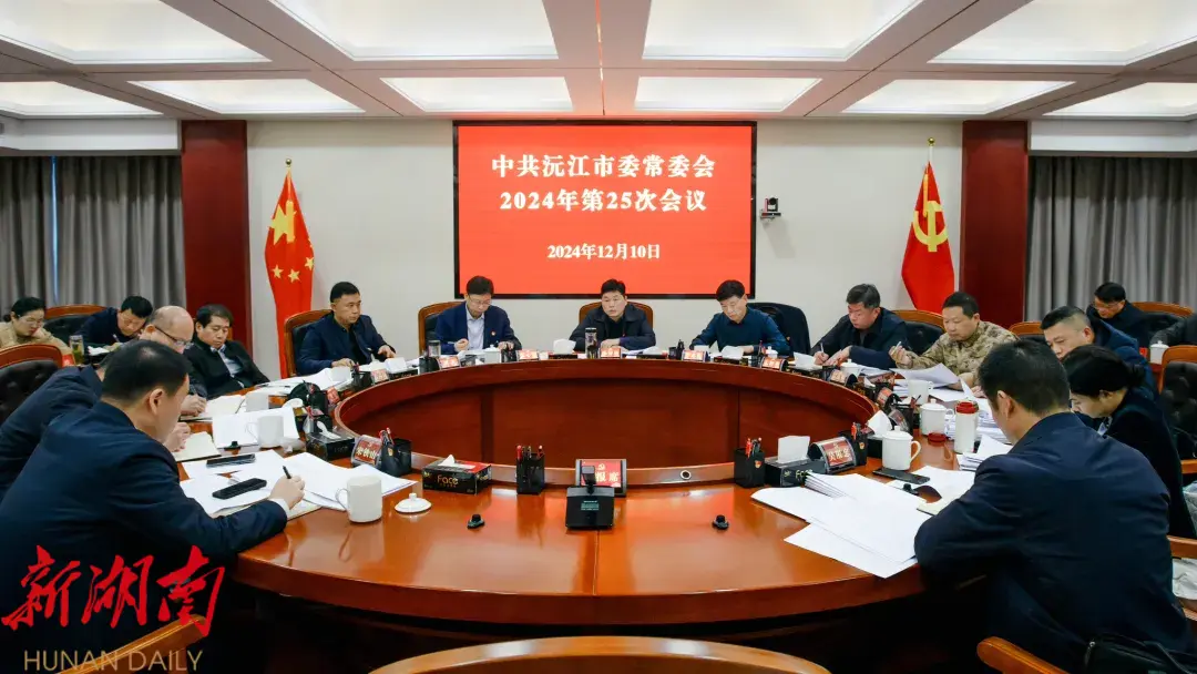 新沅江客户端12月11日讯 (记者 张劲杨 李咏澎)12月10日,沅江市委书记杨智勇主持召开市委常委会2024年第25次会议,传达学习习近平总书记在省部级主要领导干部学习贯彻党的二十届三中全会精神专题研讨班开班式上的重要讲话精神;学习了新修改的《中华人民共和国统计法》;听取了关于2024年意识形态工作情况的汇报、巩固拓展脱贫攻坚成果同乡村振兴有效衔接工作情况汇报以及全市统战工作情况汇报;研究了“两会”及市委全会有关工作。