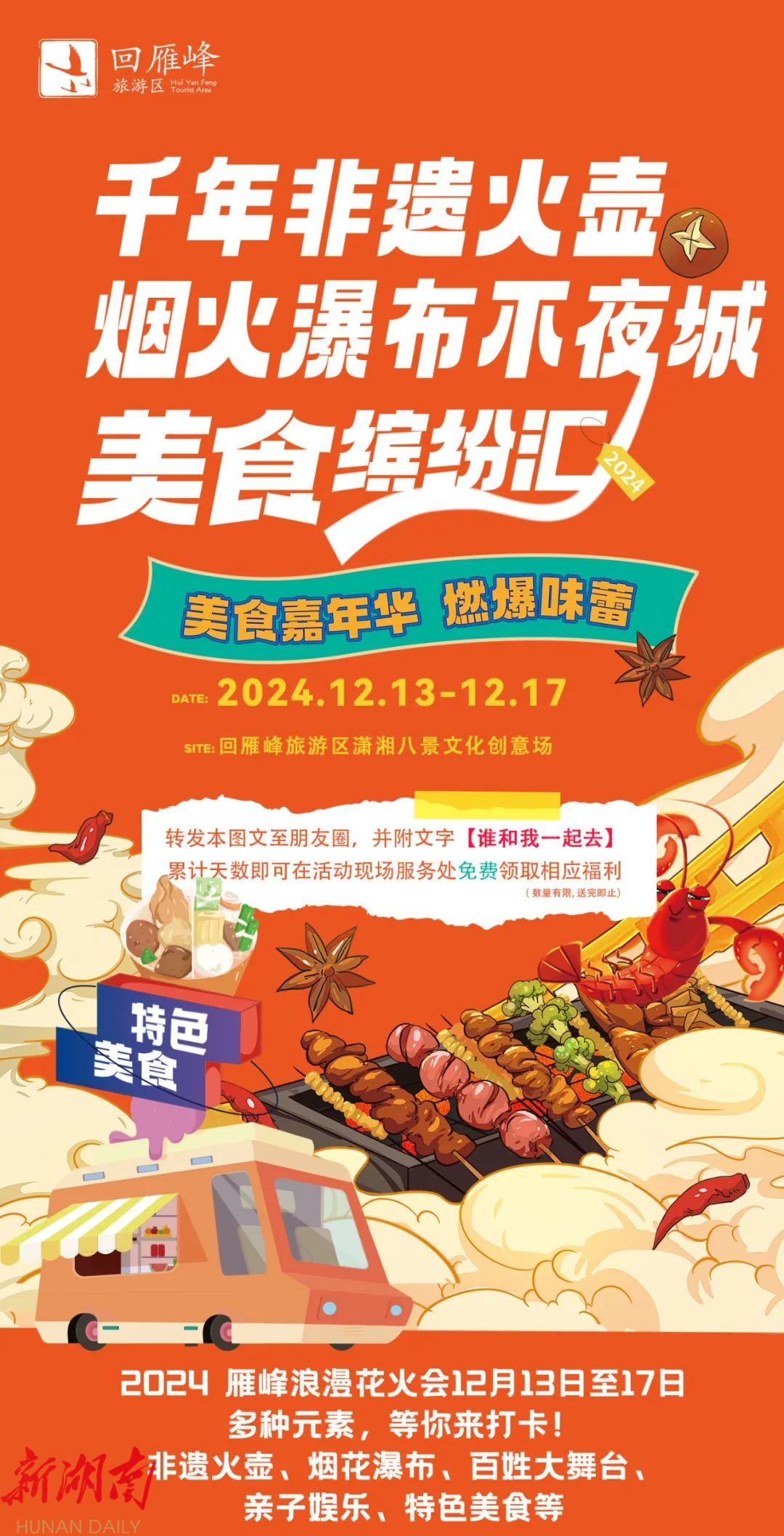 【福利来袭】回雁峰旅游区又要火力出圈了!12月13日迎来浪漫花火会,千年非遗火壶、烟花瀑布、特色美食、儿童游乐打卡美好周末