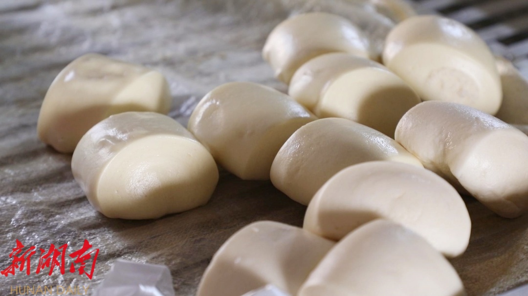 每天凌晨做馒头,天亮后走街串巷卖馒头,一直忙到晚上,这是史爱琴夫妇每天的生活。凌晨3点半,他们便开始忙碌起来。和面、醒面、定型、上蒸笼,直到馒头出笼,一整套流程下来,足足需要四五个小时,到了冬季,面粉醒得慢,光是醒面,就需要6个小时。日复一日,他们制作着约500个馒头,满足着冷水江市民的味蕾。