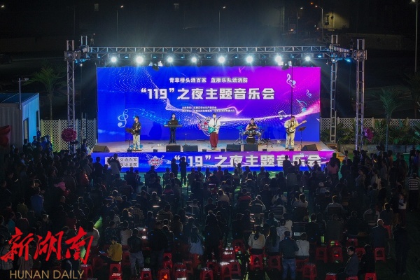 启动仪式 点燃消防宣传火炬。 11月8日,石鼓区在草桥驿站举行了“119”消防宣传月启动仪式,标志着全区消防宣传月活动的全面启动。现场设置了消防咨询服务台,开设了消防知识竞猜、消防器材展示等体验互动项目,为参观和获奖群众发放了消防文创礼品。当天,区宣传服务队队员还开展了消防宣传“五进”活动,重点深入居民小区开展消防安全知识宣传,排查飞线充电及堵塞消防通道等违法行为。当晚,蓝雁乐队在草桥驿站倾情演绎了一场以“119消防之夜”为主题的音乐盛宴。乐队以歌曲演唱为媒介,巧妙融入消防知识,通过寓教于乐的形式与现场群众展开了生动的消防知识互动问答。