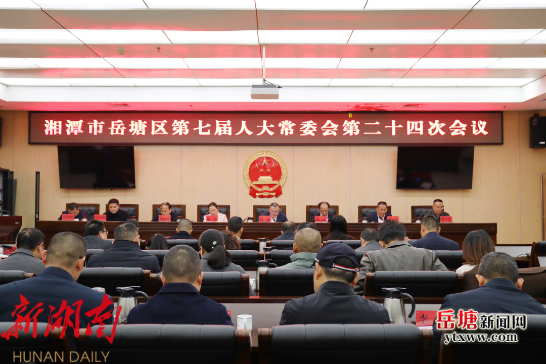 岳塘新闻网 12月12日讯 (记者:唐思雯)12 月 11 日,岳塘区第七届人大常委会第二十 四 次会议召开。区人大常委会主任颜谦主持会议,副主任李白杨、邹灿、蒋新跃、杨建伟等27名区人大常委会组成人员参加会议。区人大常委会党组成员曾令波 , 区人民检察院党组书记、检察长何永红 , 区监察委、区政府办及有关部门,区人民法院、高新区办公室相关负责人,昭山镇人大主席、人大各街道工委主任及区人大常委会机关工作人员列席会议。