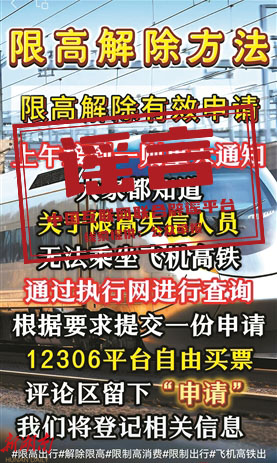 谣言:被限制高消费人员不用还款也能买机票、高铁票?