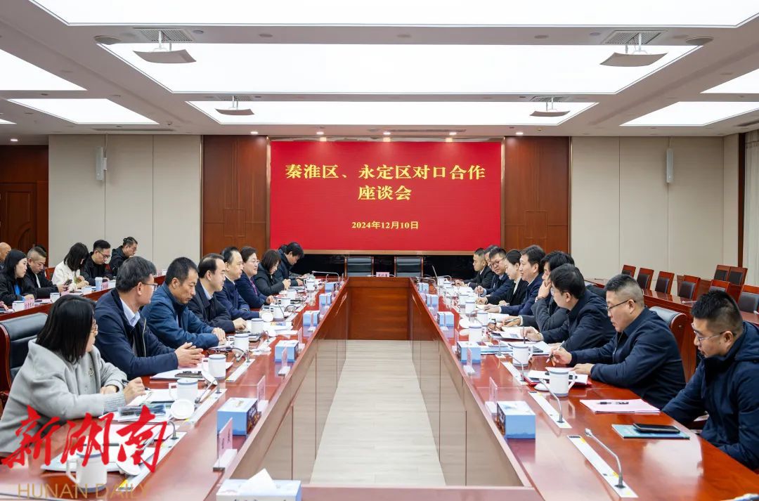 湖南日报·新湖南客户端12月12日讯(记者 谢丽琼 通讯员 陈薇) 12月10日,永定区委书记张喜松带队赴南京市秦淮区开展对口合作交流,并就双方对口合作事宜进行座谈。秦淮区领导凌向前、陈慧男、卢杰,永定区领导吴永恒、周琴、刘正佳参加座谈交流。