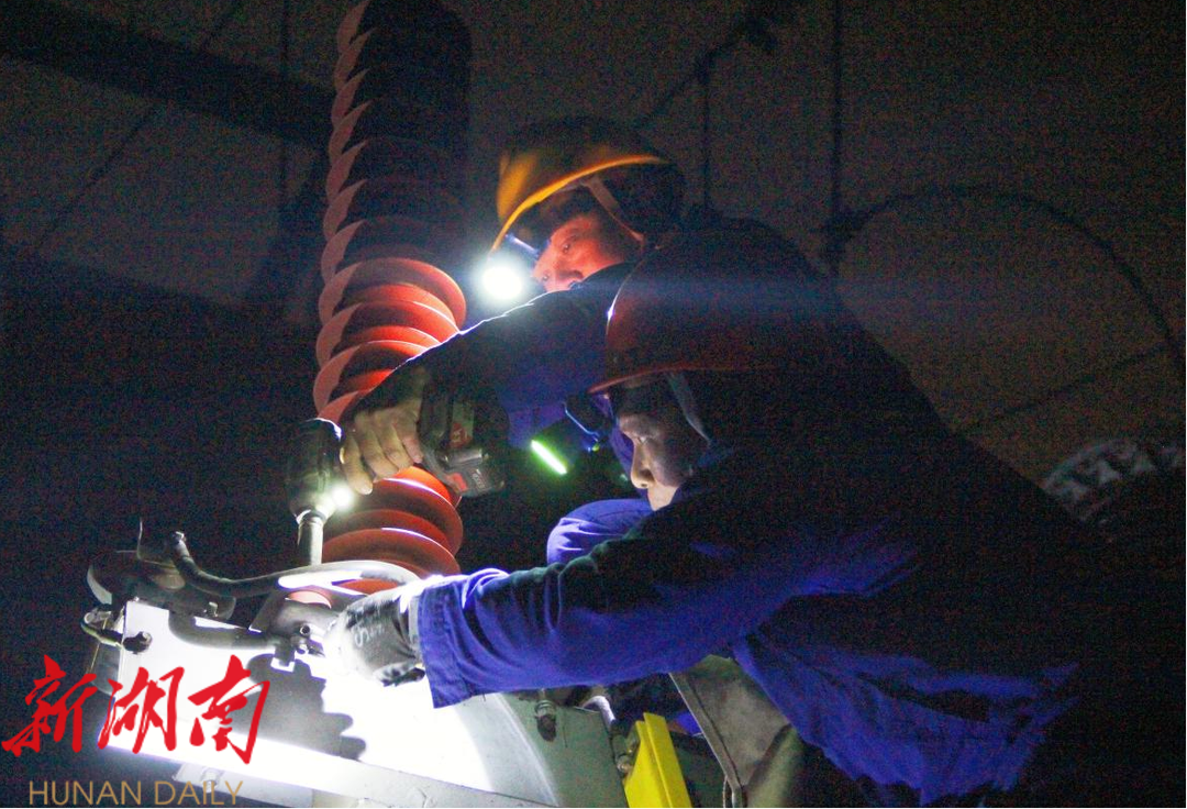 湖南日报·新湖南客户端12月13日讯(通讯员 王虹璐)“开始拆卸底座,灯光打过来!”“连接排拆卸完毕,更换计数器!”凌晨,在永兴县康绪变电站,经验丰富的检修人员正在有条不紊地进行着设备拆解、避雷器安装、连接排制作、计数器更换等操作,在用户“零感知”下完成电网“强筋壮骨”、零点抢修工作。