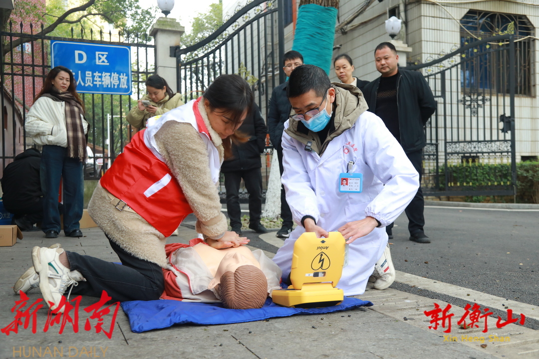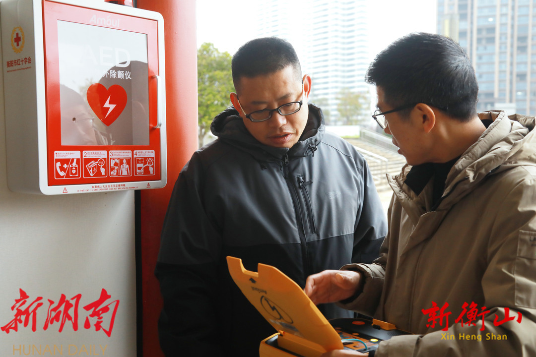 “你打开机子之后,它就有语音提示,操作很简单的……”12月12日,记者在县城人民广场和新体育馆看到,衡山县红十字会正组织工作人员将AED设备安置于显眼且易于取用的位置,细心调试,确保设备处于最佳工作状态。同时,还邀请了专业医务人员详细讲解AED设备的使用场景、操作方法和注意事项,许多市民也主动加入到了学习队伍。