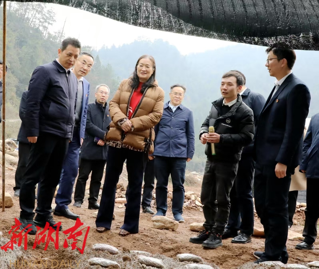 新湖南客户端12月15日讯(记者 郑湘)12月13日下午,中国工程院院士、湖南工商大学党委书记、湘江实验室主任陈晓红来湘西土家族苗族自治州古丈县蒿根坪村调研乡村振兴工作。湖南工商大学党委副书记、校长廖湘岳,党委委员、副校长甘德健,古丈县委书记滕朝辉陪同。