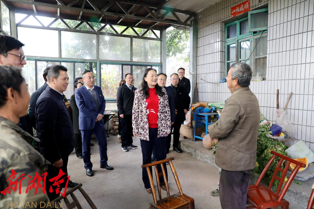 期间,陈晓红一行调研了村集体经济产业示范园、人居环境整治、通组道路硬化、羊肚菌菌种培育等情况,并走访慰问脱贫户和监测户。陈晓红、滕朝辉共同为安置点铭牌石揭幕,村民代表向湖南工商大学赠送了锦旗。
