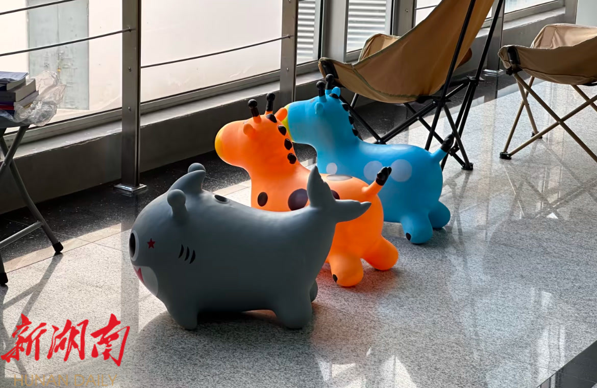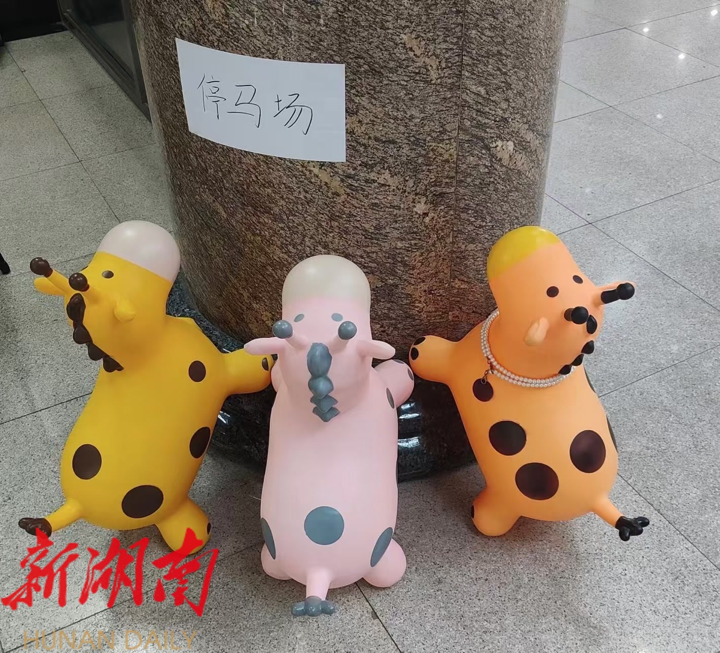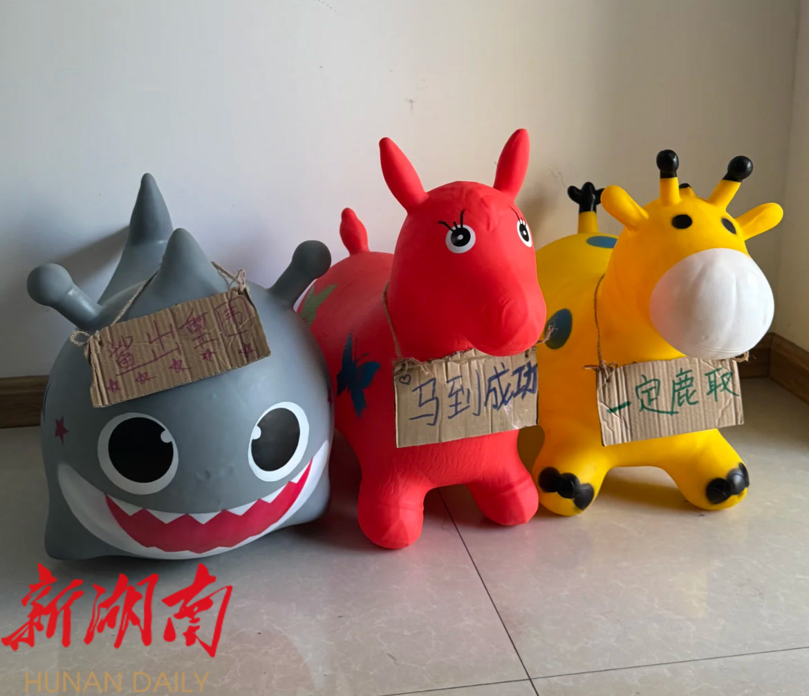 中国农业大学大四学生小朱在社交平台上晒出一组照片,充气马出现在图书馆、教室等备考场所,她配文“马到成功”。在一些高校的图书馆里,还有专门的“停马场”,五颜六色的充气马聚在一起,给校园生活添童趣。