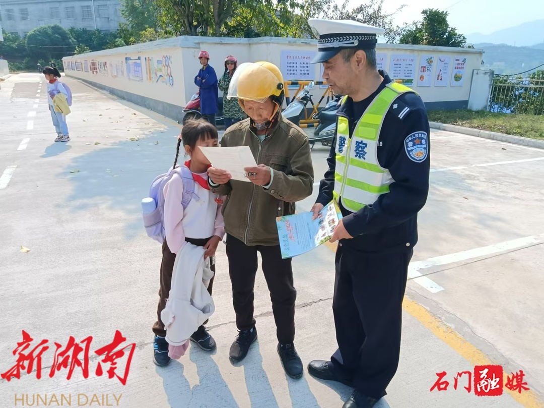 强化引导,营造宣传良好氛围。根据冬季群众出行特点,大队组织警力深入辖区中小学校、客运企业、运输企业等,发放交通安全宣传单,面对面讲解典型案例,同时要求各负责人认真组织安全教育培训,强化交通参与者的出行安全意识和防范意识。在农村地区,通过“村村响”大喇叭滚动播报、警社联合上门宣传等方式,引导群众文明出行,拒绝乘坐三轮农用车、超员超载车、客货混装车等危险车辆。同时在“石门警事”等新媒体平台,及时发布冬季道路通行情况,提醒驾驶人合理规划出行路线,确保平安出行。