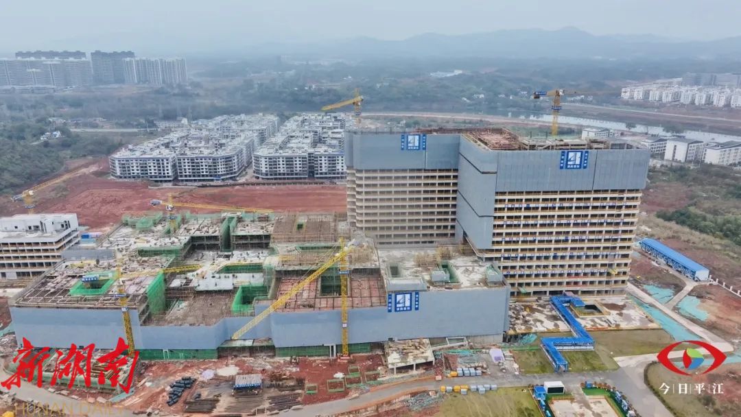 平江县第一人民医院整体搬迁项目位于平江县百花台路与杨源路交汇处东北角,由医疗综合楼、行政办公综合楼、肿瘤楼、污水处理站、液氧站及配套设施工程组成。规划用地约223.05亩,停车位约2000个,设置住院病床1500张,概算总投资约12亿元。