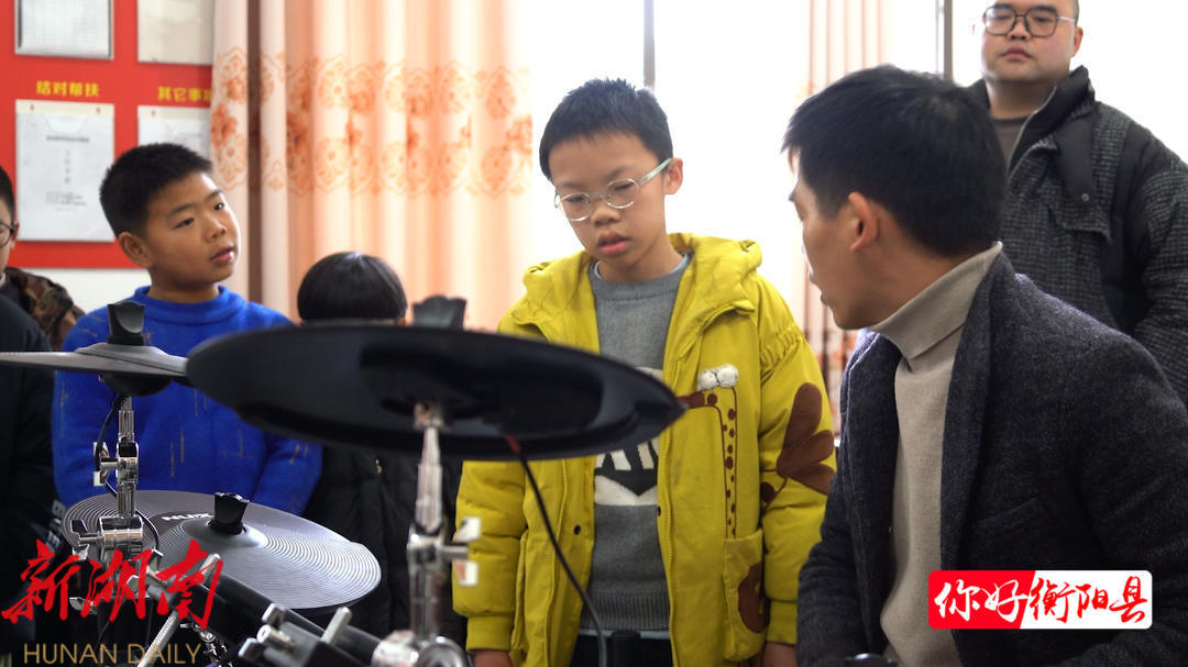 在现场指导乐队演奏的是音乐志愿者文劲,他从2023年开始开展乡村学校音乐支教活动,用自己的专业技能,向大山里的孩子们传递音乐之美。今年10月,文劲受邀来到九峰完小开设音乐兴趣班,与学校的音乐老师一道,陪孩子们玩音乐、学音乐,让孩子们在享受音乐乐趣的同时,培养他们的才能,展示他们的个性,让他们健康快乐成长。