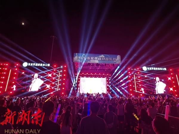 武陵源嘀格儿音乐季、2024张家界峰林音乐节、张家界天子山峰林音乐季唱响文旅新乐章;“夜游张家界、萤光金鞭溪”“索溪河畔・漫游一夏”开启夜游新体验。在索溪河畔百人摆手舞狂欢现场,来自大连的张女士和朋友载歌载舞,“超级好玩,河趴里的KTV与众不同。”
