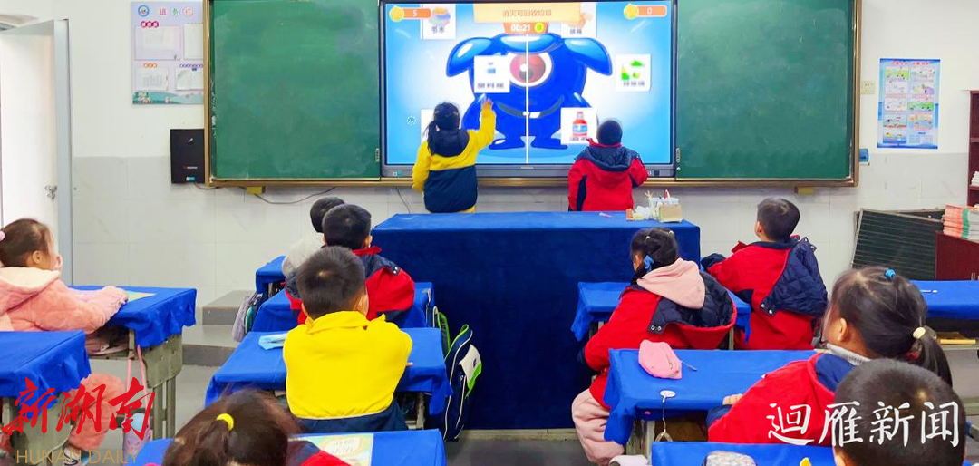 下午,各班级举行了主题班会。活动中,老师们首先通过展示图片、统计数据资料,给孩子们宣讲垃圾分类处理能够产生巨大的经济效益、环境效益和资源效益,让孩子们认识到,分类处理能够“变废为宝”、充分利用资源,也能够让有害垃圾得到及时、彻底的销毁,减少污染。随后,老师组织同学们通过抢答、动画游戏或现场参观分类垃圾箱等活动,重点学习垃圾分类标准,学会区分“可回收垃圾”“厨余垃圾”“有害垃圾”“其他垃圾”,掌握对应的投放、处置方法。