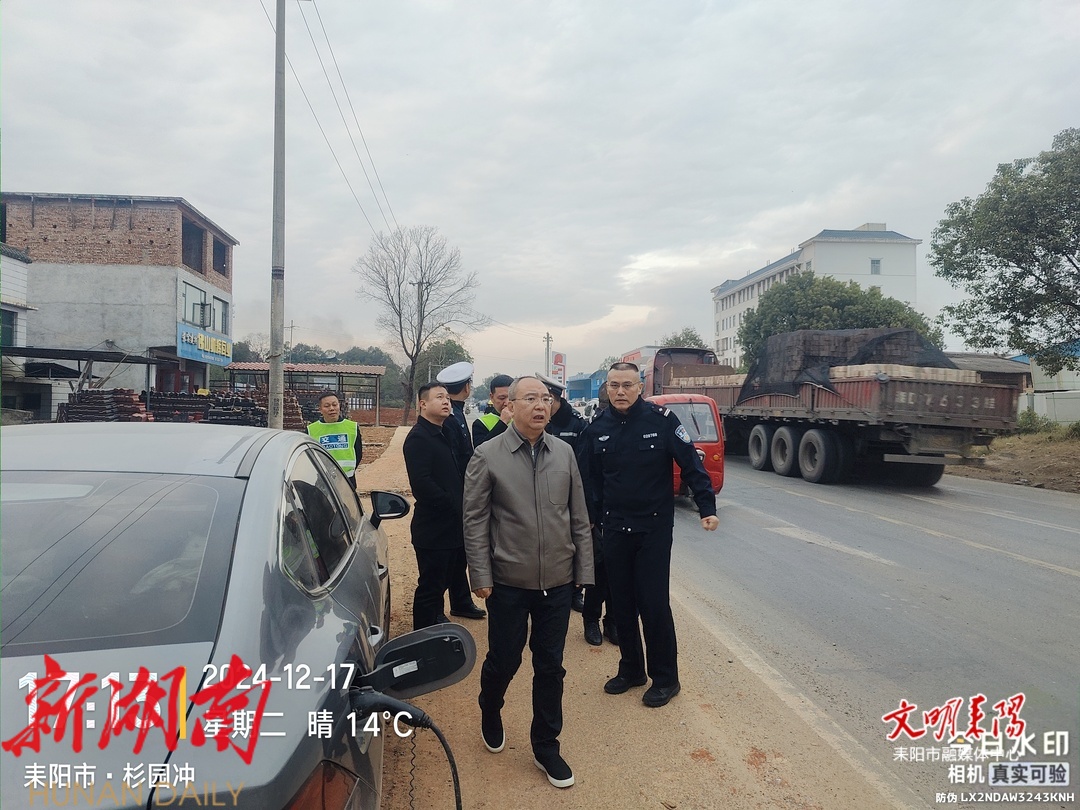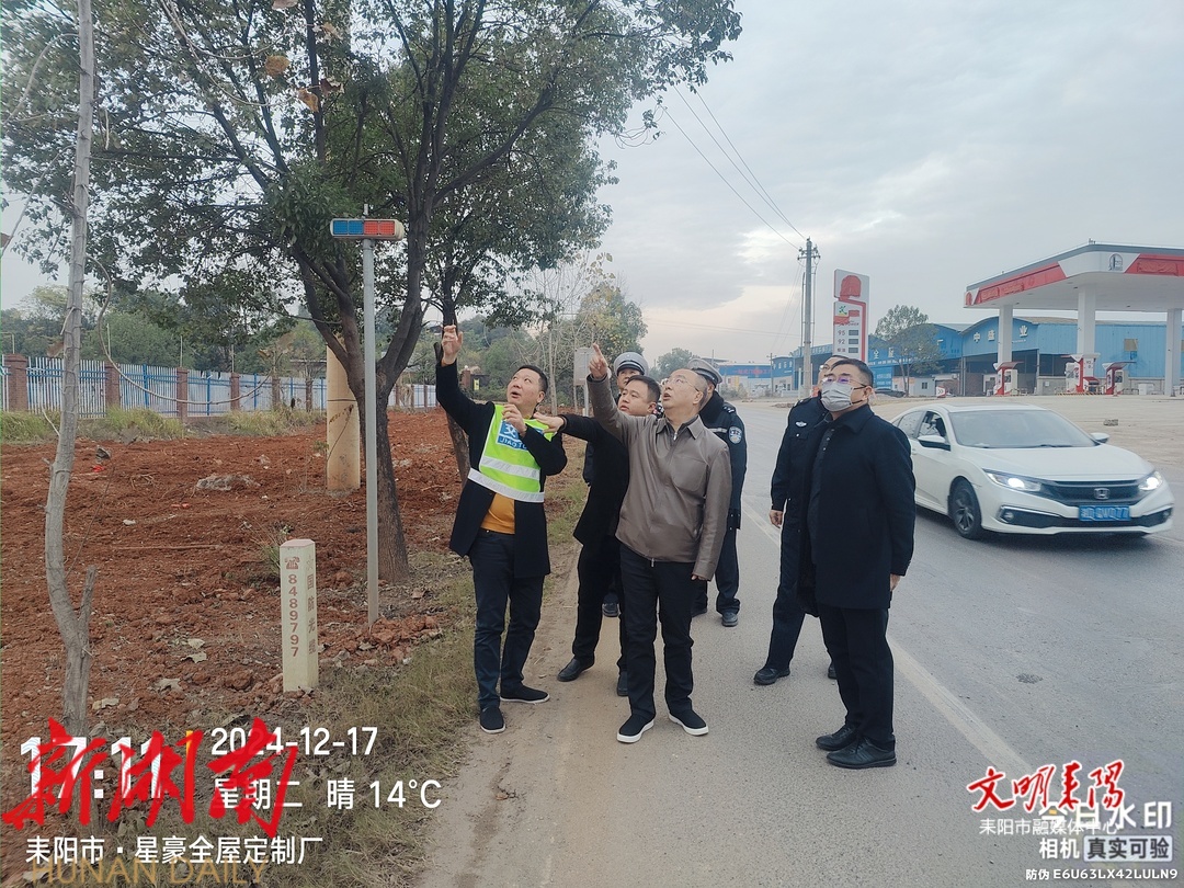 12月17日下午,耒阳市副市长、市公安局局长宁忠军率队到灶市完小及107国道部分路段实地调研交通事故安全隐患风险路段。