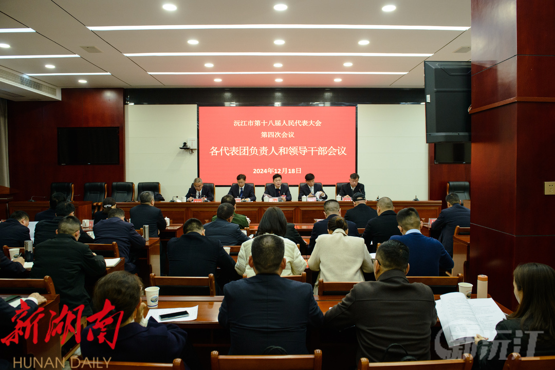 新沅江客户端12月18日讯 (人大报道组报道)12月18日下午,沅江市第十八届人民代表大会第四次会议召开代表团负责人和领导干部会议。沅江市委书记杨智勇出席会议并讲话。市委副书记、市长罗必胜,市委副书记、统战部长张心镜出席会议,市人大常委会主任孟智勇主持会议。市人大常委会副主任谭洪祥通报了大会筹备工作情况。