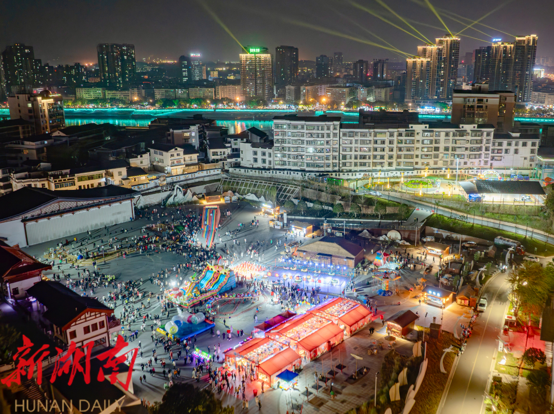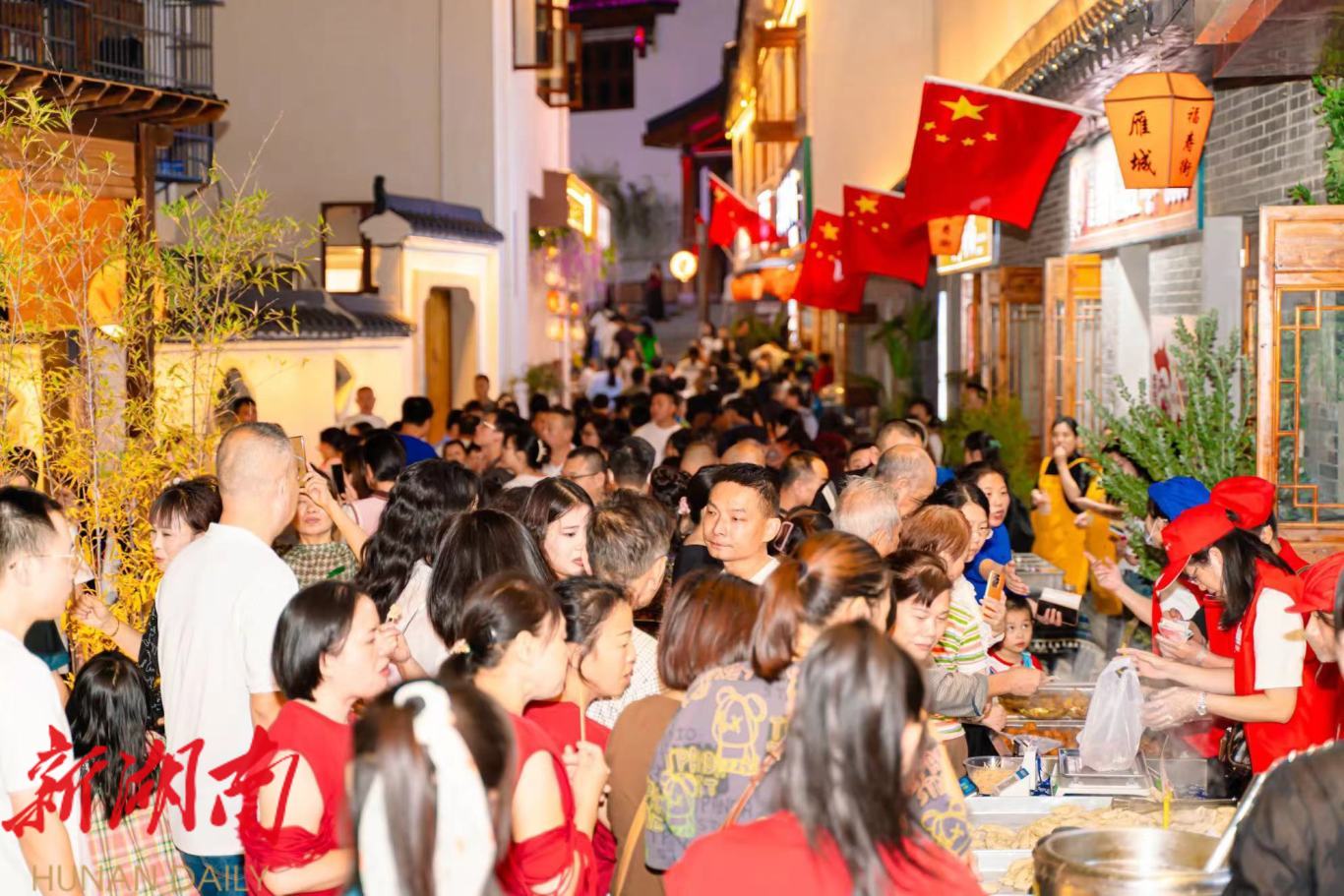 这里有会客厅的“盛宴”。手拿非遗糖画的孩童,笑语盈盈;拍照打卡的亲朋好友,用笑容定格月圆人欢的美好瞬间;兴致勃勃围看演出的人们,也成为南岳第一峰文旅街区“周末Party”的景中人。无论是万人篝火晚会,还是“潇湘映画·妙荟集”,在南岳第一峰文旅街区这个集观赏、休憩、消费于一体的城市文化交流会客空间里,你可以在古色古香的吊脚楼里品“衡茶”,也可以在美食展上选购精致的伏特加酒、闻名世界的鱼子酱,你还可以听一听非遗美食背后的故事。