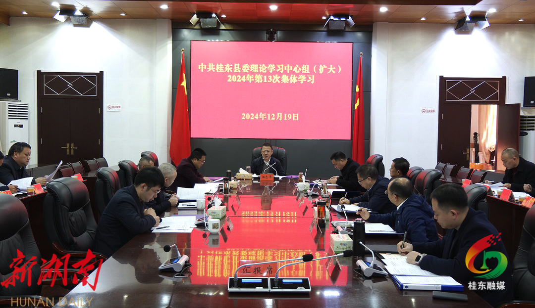 桂东县融媒体中心12月19日讯(记者 邓敏)12月19日,县委书记、县委理论学习中心组组长伍志平主持开展县委理论学习中心组(扩大)2024年第13次集体学习。县委副书记、代县长尹建恒等县委理论学习中心组成员参加学习。