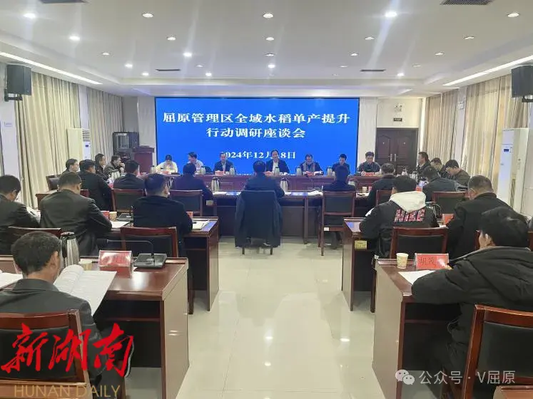 湖南日报·新湖南客户端12月20日讯(通讯员 魏璐璇) 12月18日下午,湖南省农科院党委委员、副院长、湖南杂交水稻研究中心党委书记许靖波带队来屈原管理区开展全域水稻单产提升行动调研座谈,共商屈原管理区全域水稻单产提升行动大计,共绘来年丰收蓝图。区党委书记向科军出席会议并讲话,区党委委员、区管委会副主任曹正平主持座谈会。区直相关部门负责人、各乡镇负责人及经营主体代表参加。