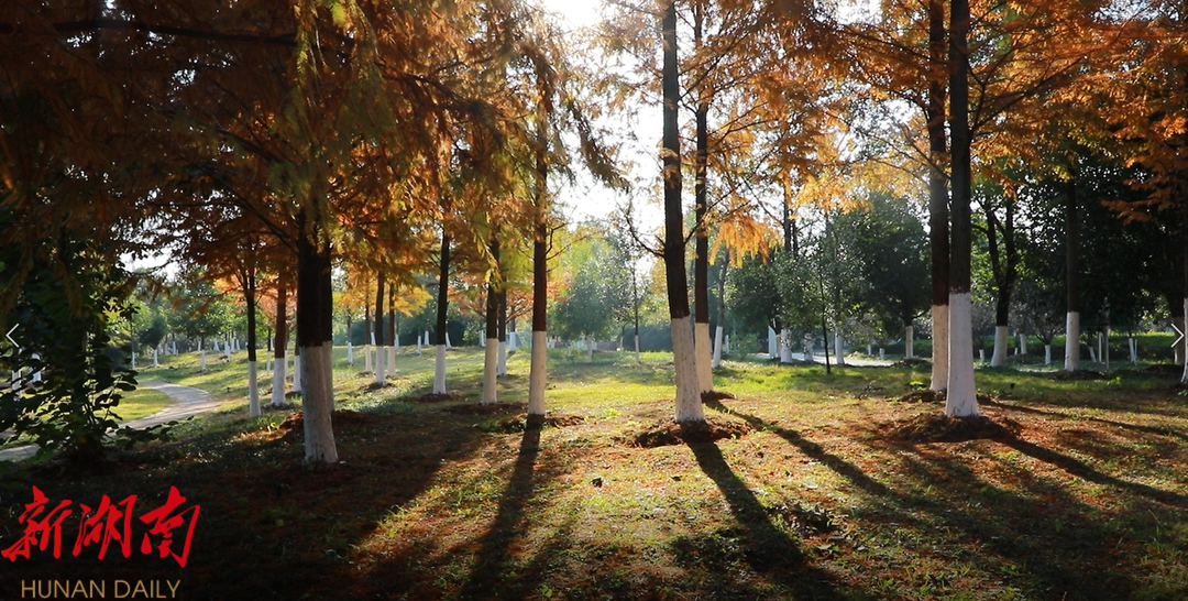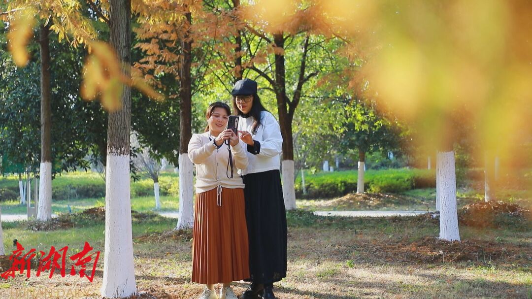新湖南客户端12月2日讯(通讯员 秦兰纯 唐佳莉 唐桂海 乔浚) 连日来,紫水国家湿地公园秋色宜人,成为市民休闲娱乐的热门场地。这里金黄的银杏与火红的水杉树交织,构成一幅五彩斑斓的画卷,吸引众多市民前来拍照打卡。