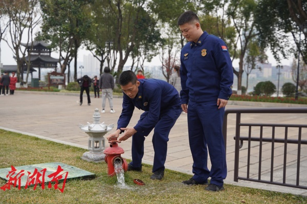 期间,消防救援人员为石鼓书院整体进行了防火安全检查,询问查看了消火栓的维护保养、消防水源的使用管理,以及值班室人员值班、履职情况。