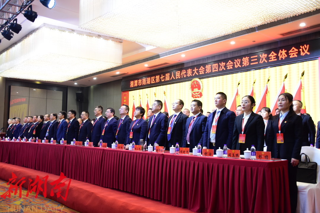至此,雨湖区第七届人民代表大会第四次会议经过全体代表和工作人员的共同努力,圆满完成了各项议程。最后,在雄壮的国歌声中,雨湖区第七届人民代表大会第四次会议胜利闭幕。