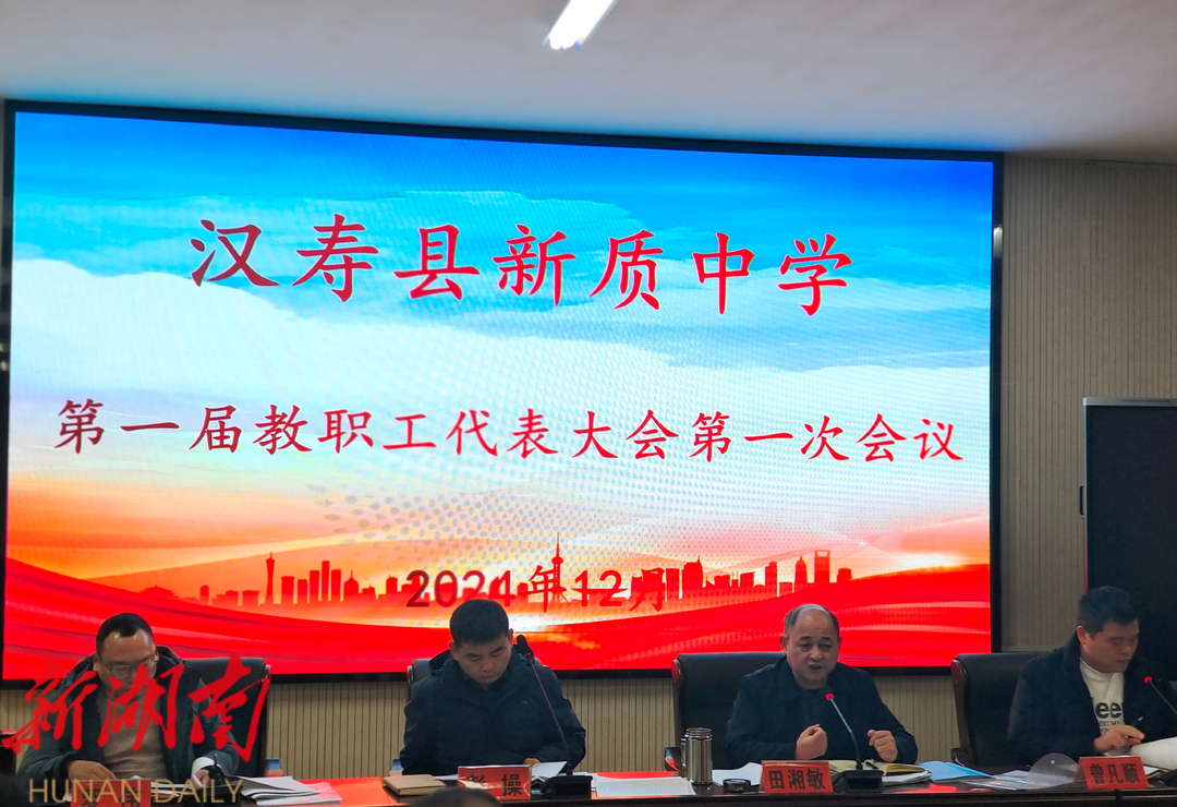 12月19日,汉寿县新质中学召开第一次教职工代表大会。学校领导及教职工代表齐聚一堂,共同为学校发展建言献策。