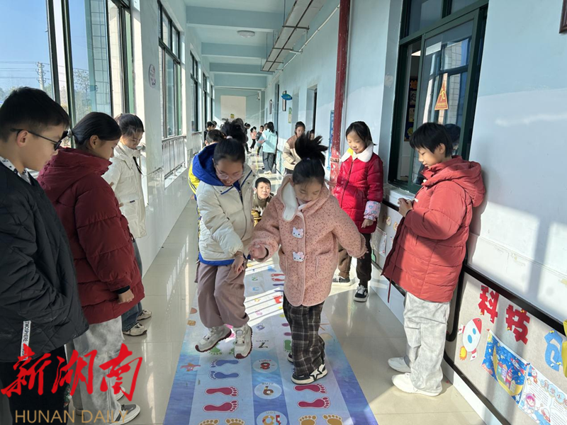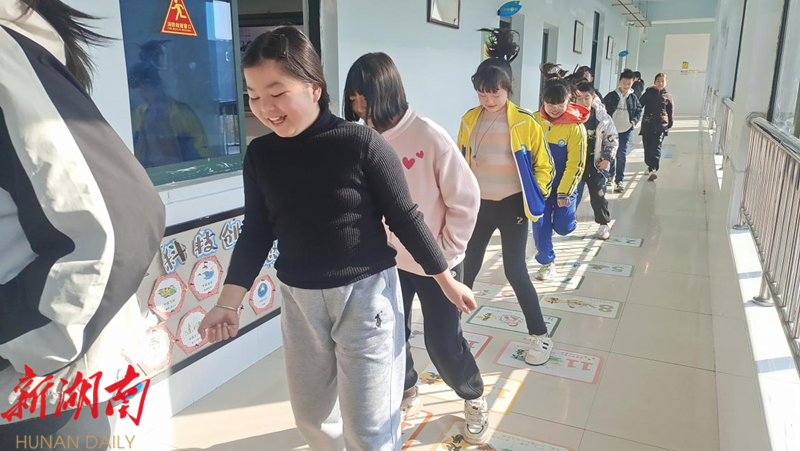 12月18日上午的大课间,金源小学的校园内充满了欢声笑语,一场别开生面的“校长喊你来游戏——地面游戏”活动在此热烈举行。在冬日暖阳的照耀下,孩子们成群结队地涌向教学楼走廊,这里已经变身为一个充满魔力的“地面游乐园”。他们迫不及待地“解锁”一个个游戏关卡,或是围坐一团探讨策略,或是排队等候一展身手,每个人的脸上都闪烁着探索的光芒。