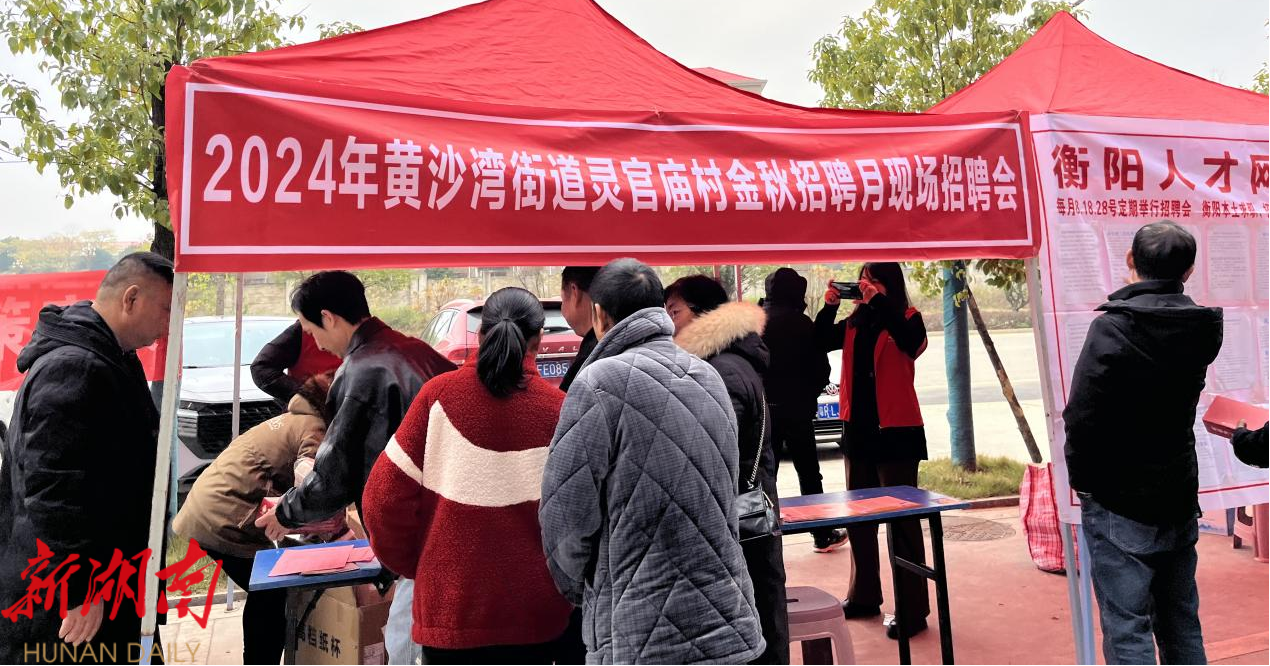 为帮助企业缓解招工稳工难题,促进人力资源供需匹配对接,鼓励、吸引更多优质劳动力留乡就业,近 日,由黄沙湾街道、灵官庙村主办,衡阳市涵宇人力资源有限公司协办 的 “金秋招聘月” 现场 招聘会在 湘环小镇 举行。