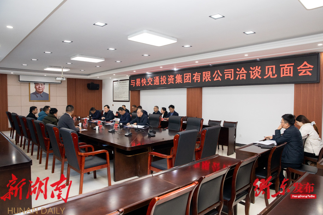 衡东融媒12月20日讯(融媒体记者 谭忠 谭碧婷)12月20日,县委书记谭建华主持召开与易快交通投资集团有限公司洽谈见面会,双方就开展项目合作、促进互利共赢进行深入交流。县委副书记、统战部部长伍松出席。