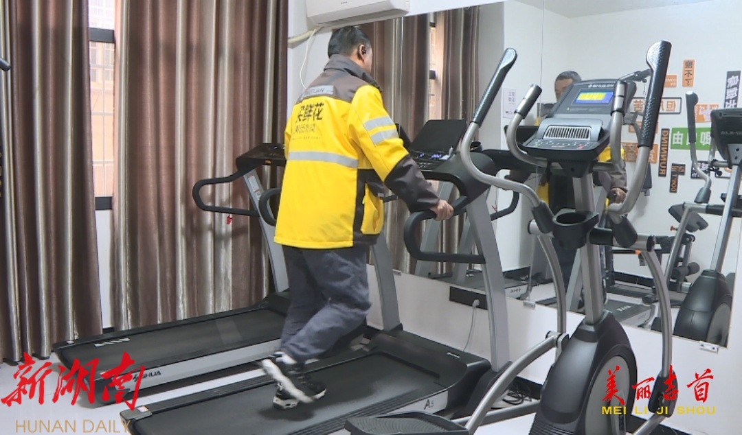 驿站二楼还开设了职工健身房,配备跑步机、动感单车等一系列健身设备,许多骑手会选择来这里运动解压,以更好的状态投入配送工作。
