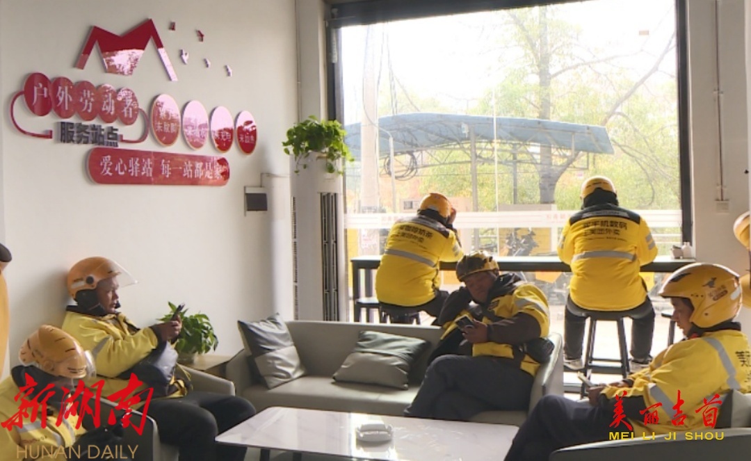 走进微加驿站,一股暖意扑面而来,屋内明净整洁,沙发、液晶电视、饮水机、卫生间、图书角等设施一应俱全,十几个外卖骑手正在这里小憩,梅伟时不时来到驿站同员工交流,关心他们的工作和生活状况。“通过驿站为他们提供一个休息、租车、维修、救援等一系列综合性服务,让他们在高压的工作过后,能更好地享受到公司对他们的关爱。”梅伟说道。