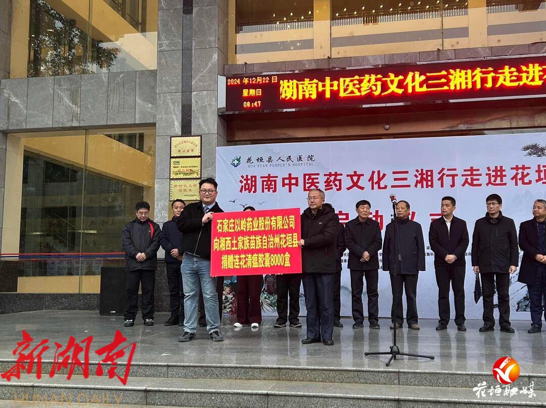 启动仪式上,史小溪宣布湖南“中医药文化三湘行”走进花垣公益活动启动。石家庄以岭药业股份有限公司向花垣县捐赠连花清瘟胶囊8000盒。