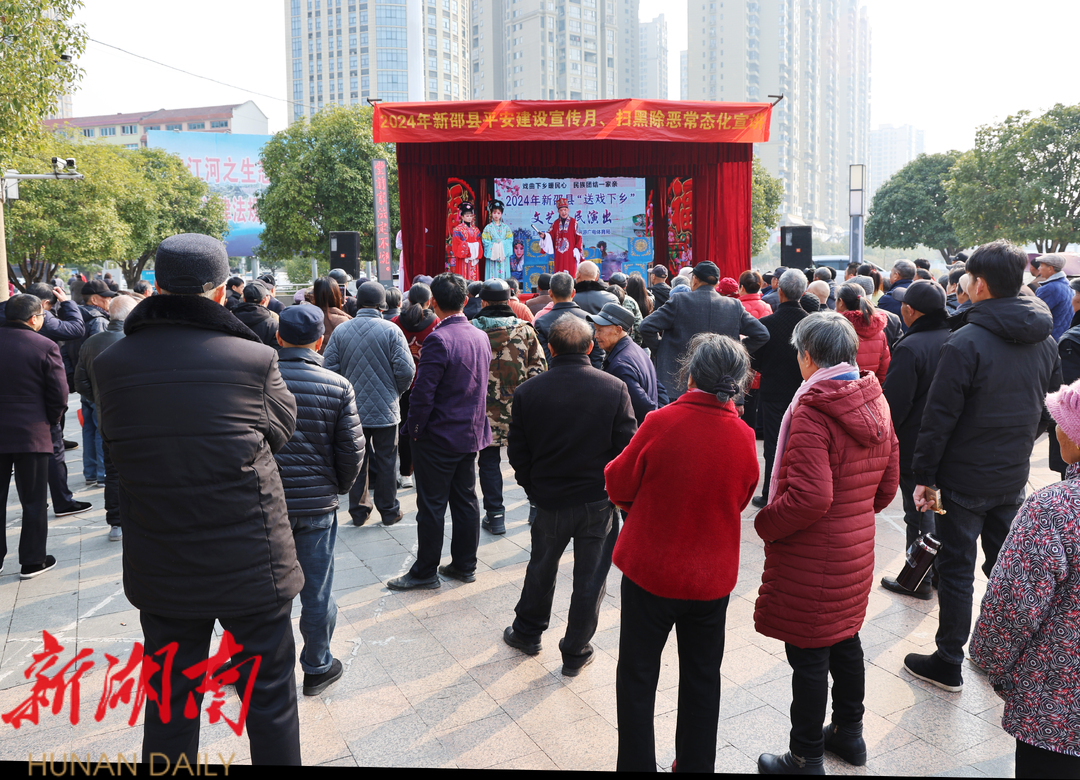 新新邵客户端12月20日讯 华丽的戏服、精湛的演技、优美的唱腔……12月19日,阳光明媚,由新邵县文旅广体局、县文化馆精心筹备的2024年新邵县“送戏下乡”文艺惠民演出活动,在原县政务中心广场精彩上演,现场人山人海、热闹非凡。