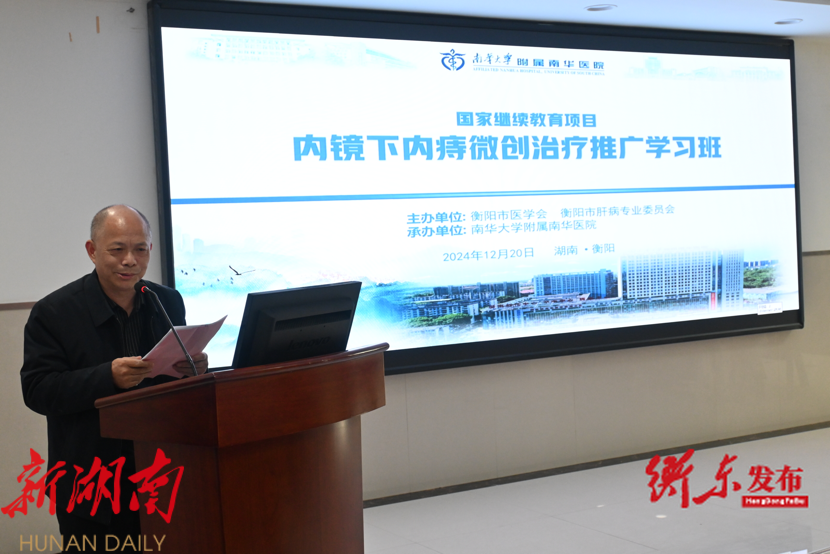 衡东融媒12月22日讯(通讯员 齐宇)12月20日,由衡阳市医学会主办,南华大学附属南华医院承办的“2024年衡阳市医学会肝病专业委员会换届选举大会暨国家继续教育项目:内镜下内痔微创治疗推广学习班”在南华大学附属南华医院顺利召开。