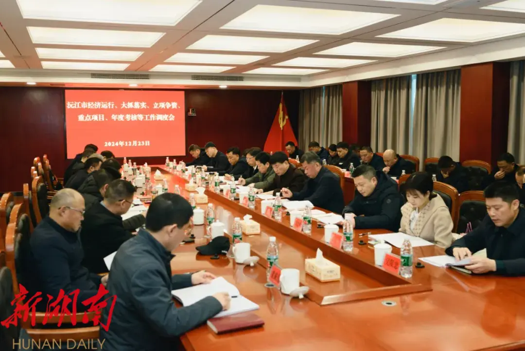 新沅江客户端12月24日讯 (记者 黄曦 李咏澎)12月23日,沅江市召开经济运行、大抓落实、立项争资、重点项目、年度考核等工作调度会。市委书记杨智勇出席并讲话,市委副书记、市长罗必胜主持会议,市委副书记、统战部长张心镜,市人大常委会主任孟智勇,市政协主席刘武等市领导出席会议。