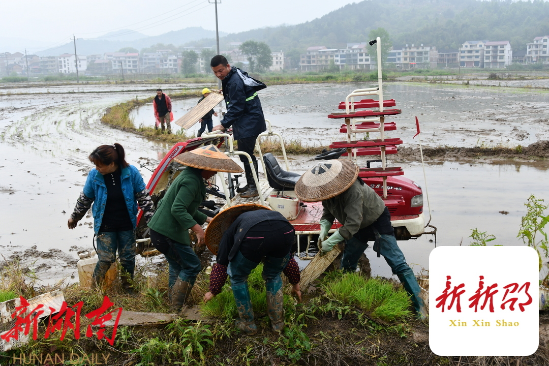 新新邵客户端4月19日讯 (记者 吴珺 李菁)4月16日,新邵县在寸石镇田心村双季稻万亩核心示范片举行全县2021年春季水稻机插机抛作业现场演示会,市农业农村局党组成员、副局长刘开兴,副县长李繁荣,县农业农村系统工作人员,全县各机抛机插示范户、种粮大户、合作社代表等参加活动。
