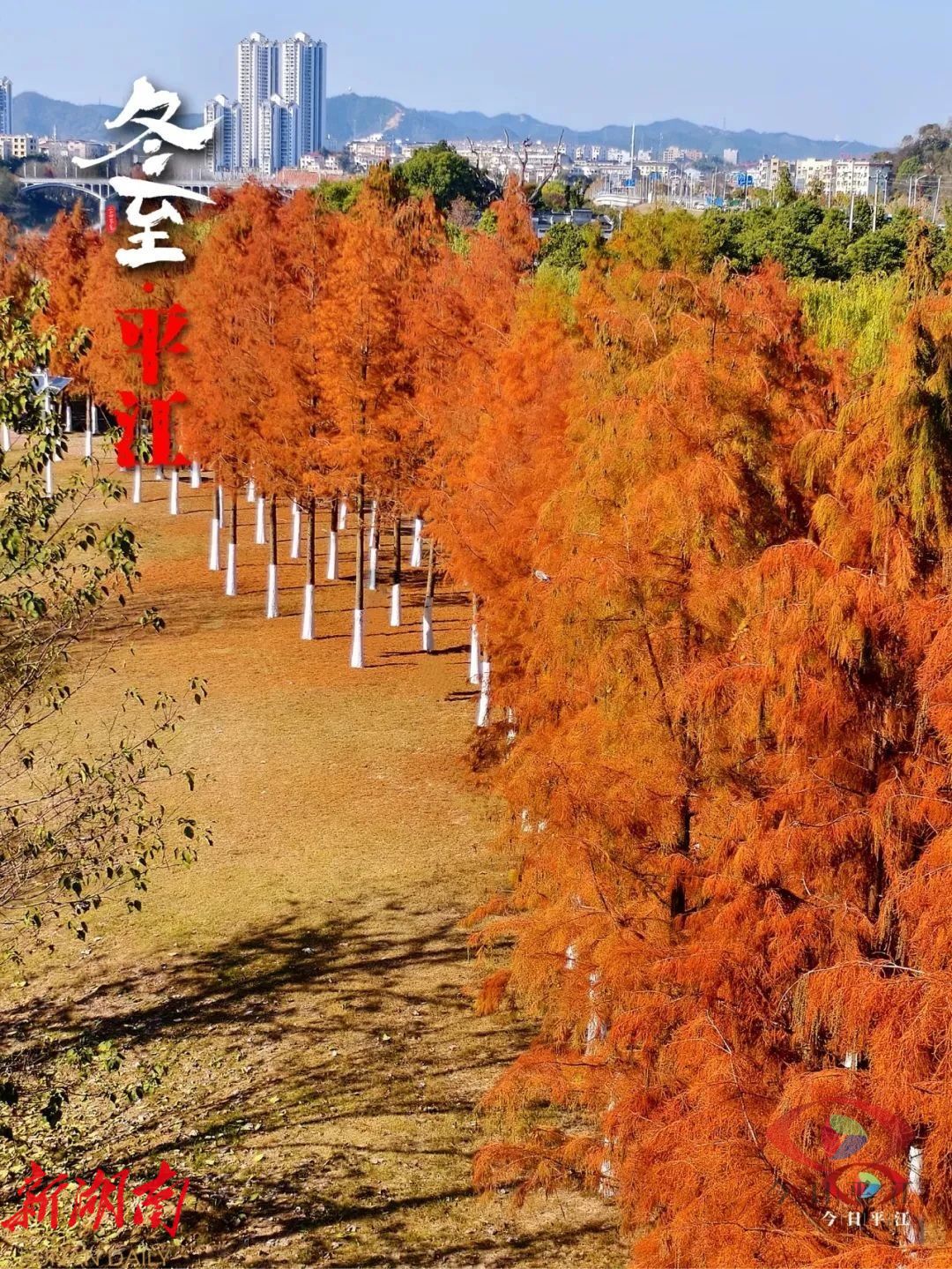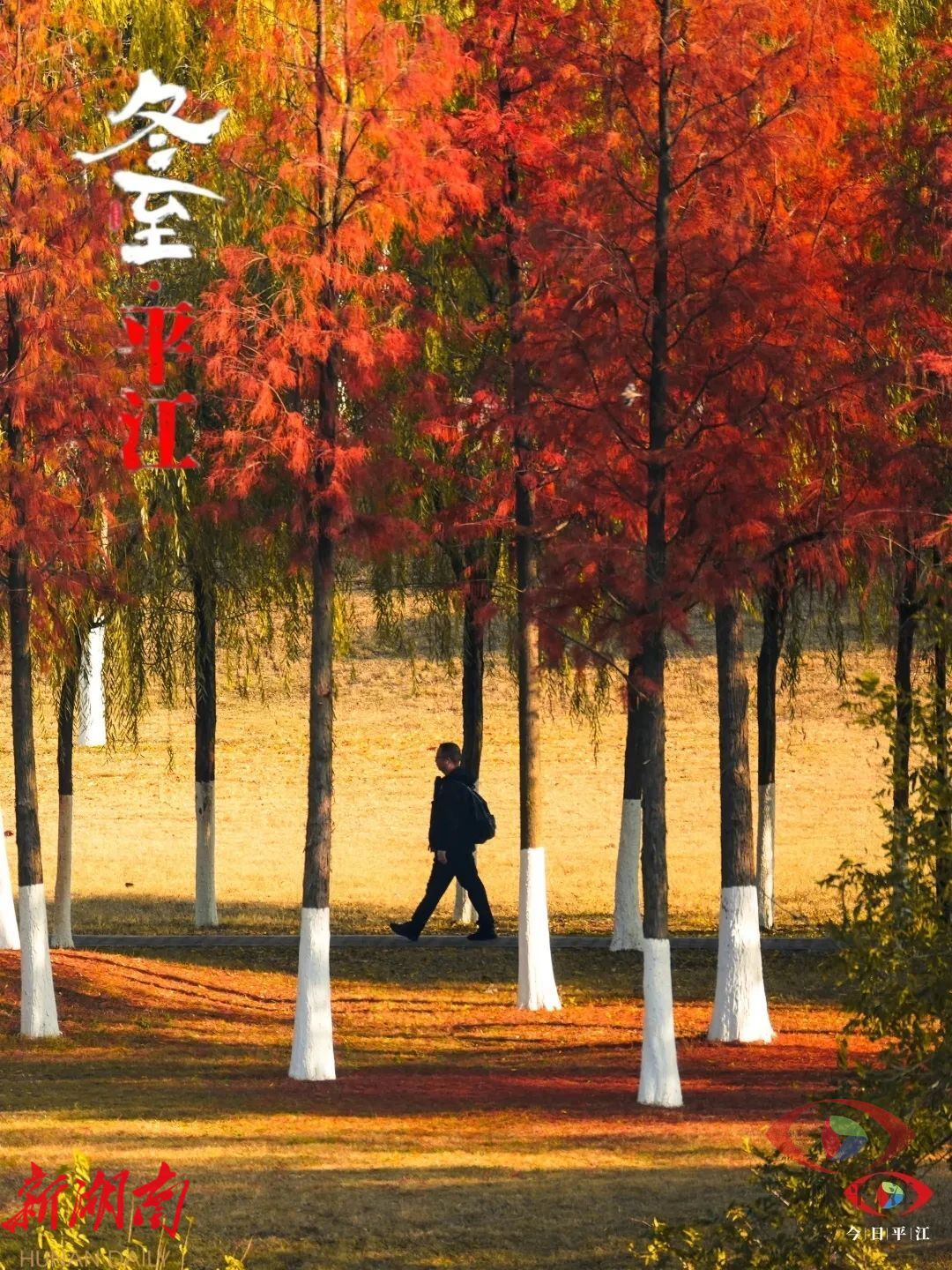 平江的冬至是彩色的。绿色始终是平江的主调,但是这个时节,当你漫步在平江的街头巷尾、山坡田地、道路两旁,你会发现树树皆秋色、山山唯落晖的美景随处可见。天岳大道、平江大道、天岳广场、汨江风光带……五颜六色的叶片装饰着,如同一幅幅鲜艳的油画。
