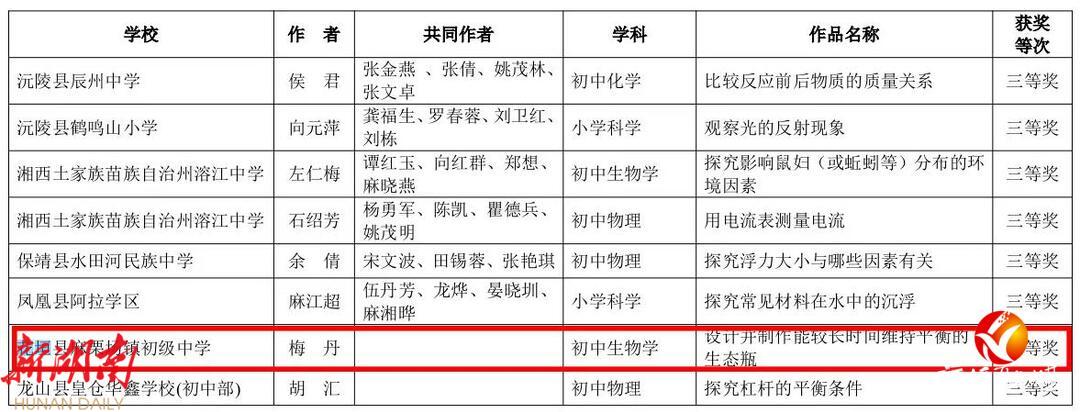 近日,省教育厅公布了2024年湖南省“基础教育精品课”遴选获奖结果。花垣县提交作品总数107堂,其中学科类105堂、特殊教育1堂、实验教学类1堂,经县、州、省层层遴选,最终民乐镇初级中学教师龙俊的课程《做更好的自己》荣获省级一等奖,麻栗场镇初级中学教师梅丹的课程《设计并制作能较长时间维持平衡的生态瓶》荣获实验教学类三等奖,花垣县第一高级中学教师凌晶、花垣县第二小学教师侯璇、花垣县第二小学教师张巧娟、花垣县芙蓉学校教师龙岸梅、吉卫民族中学教师彭叶、吉卫民族小学教师龙慧、麻栗场镇中心小学教师石慧、麻栗场镇中心小学教师石梦诗的课程分别荣获省级三等奖,花垣县教育和体育局荣获湖南省“基础教育精品课”活动县市级“优秀组织单位”。