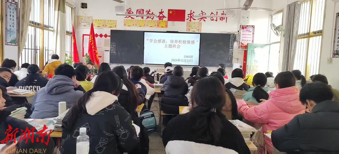 新湖南客户端12月23日讯(通讯员 李潇涵 乔鑫)12月23日,白牙市中学举办“学会感恩,培养积极情感”主题班会活动,引导学生学会感恩,培养积极健康的情感态度。